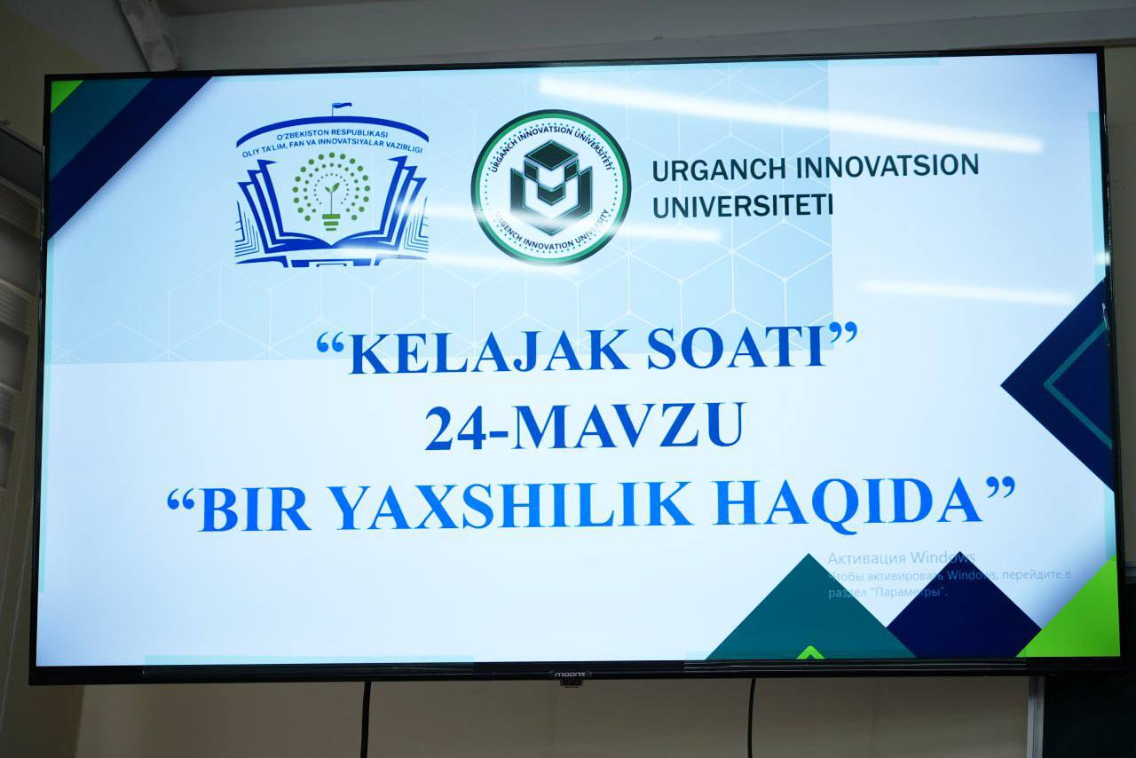 Urganch innovatsion universitetida “Kelajak soati” rukni ostidagi 24-mavzu darsi “Bir yaxshilik haqida” mavzusida tashkil etildi.