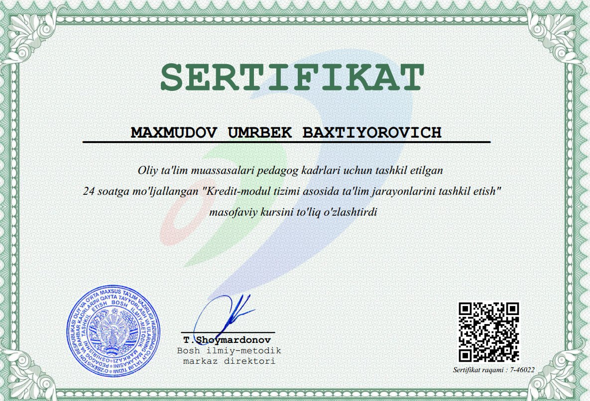 Maxmudov Umrbek 1991-yil Xorazmda tug'ilgan. Urganch davlat universiteti Tarix yo'nalishini tamomlagan.