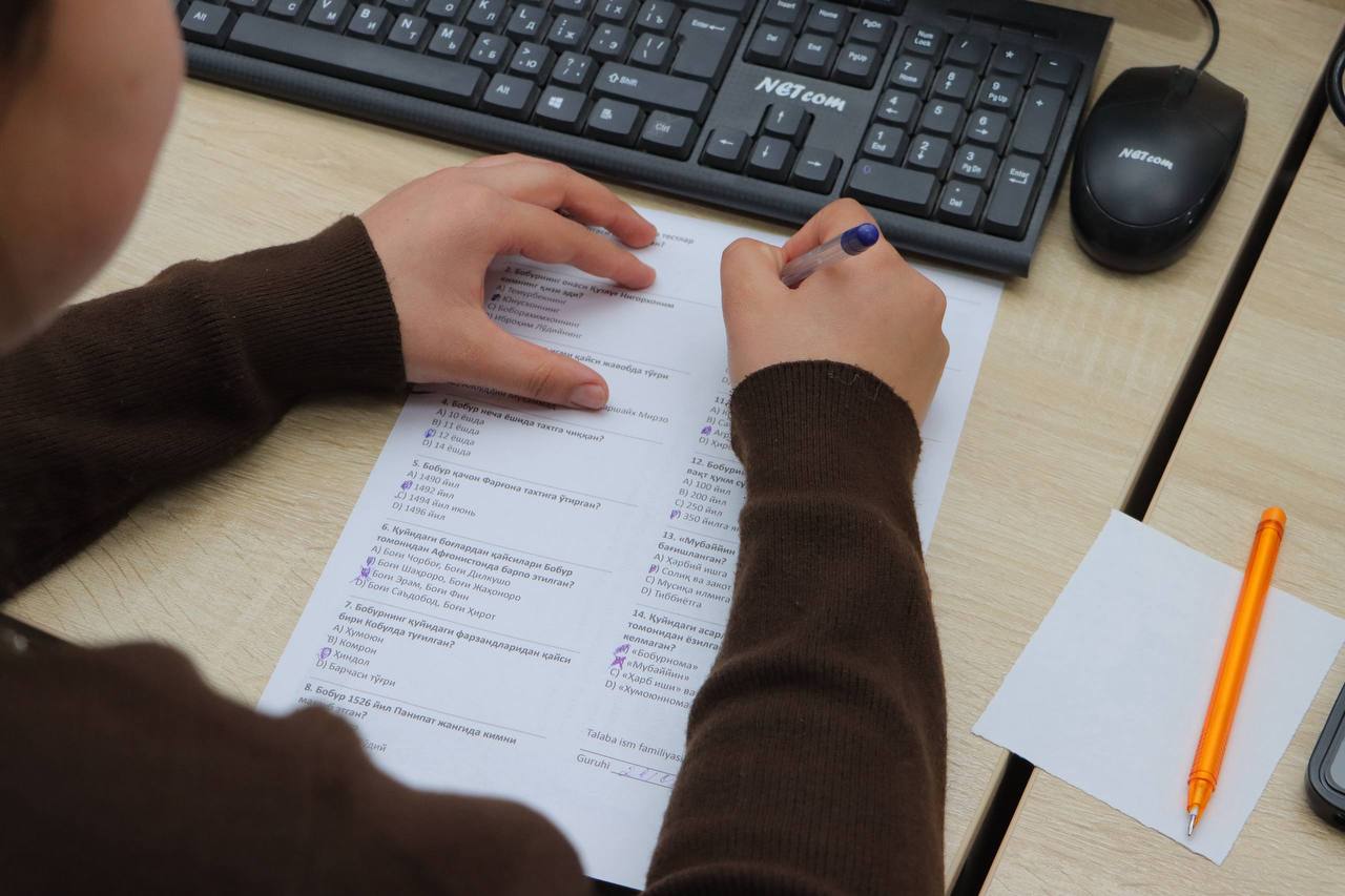 Shundan so‘ng talabalar “Boburnoma” asari asosida tayyorlangan savollarga test shaklida javob berish orqali asar borasidagi bilimlarini yana bir bor mustahkamladilar.