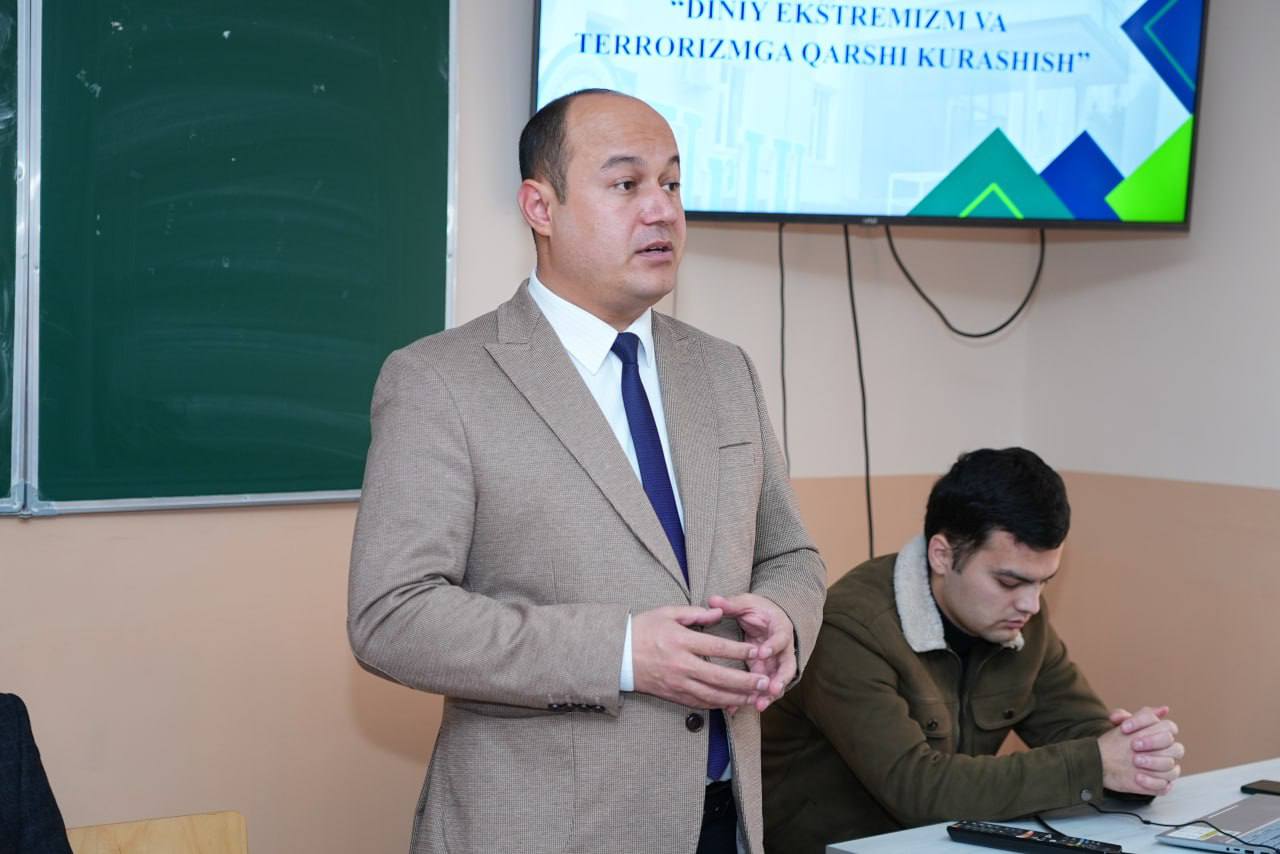 Tadbirda universitet Yoshlar masalalari va ma’naviy-ma’rifiy ishlar bo‘yicha prorektori, dotsent N. Matyakubov, rektor maslahatchisi G‘. Matsapayev hamda profilaktika inspektori, mayor M. Berdiyevlar so‘zga chiqib, diniy ekstremizm va terrorizmga qarshi kurashish har bir fuqaroning muhim vazifasi ekanligini ta’kidladilar. Shuningdek, yoshlarni internet va ijtimoiy tarmoqlar orqali tarqalayotgan zararli g‘oyalardan asrash, tanqidiy fikrlashni kuchaytirish va huquqiy savodxonlikni oshirishning ahamiyati, yoshlarni huquqbuzarlik, giyohvandlik kabi illatlardan himoya qilish masalalariga alohida to‘xtalib o‘tildi.
